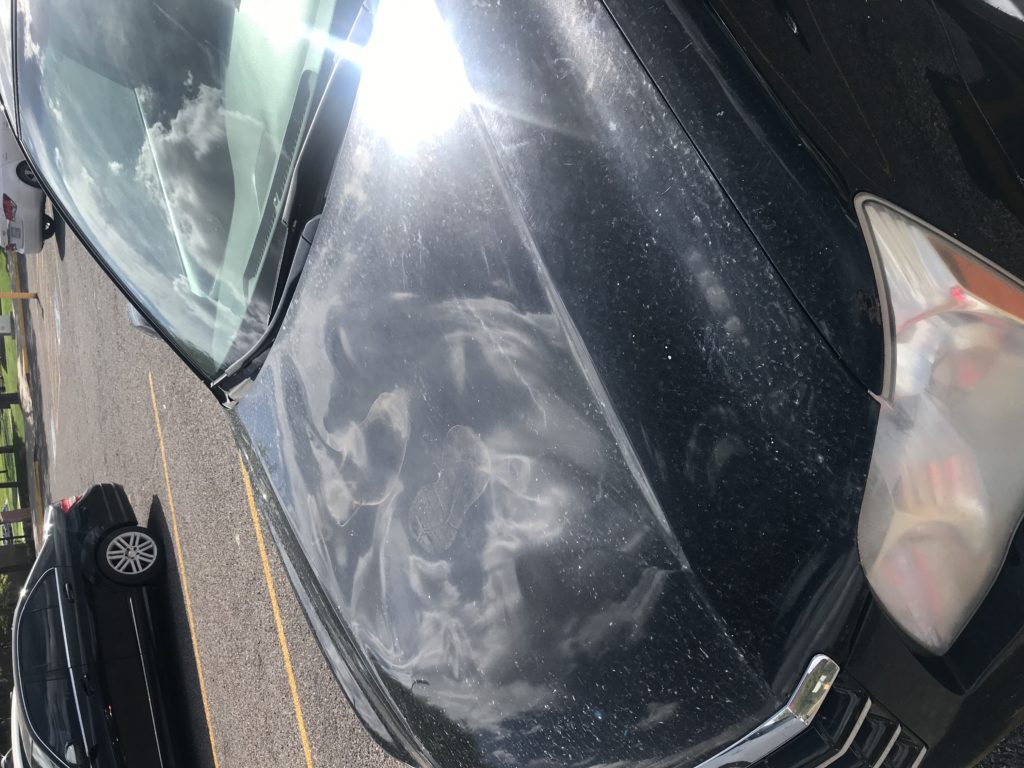 Haywood says significant damage was done to several vehicle hoods.