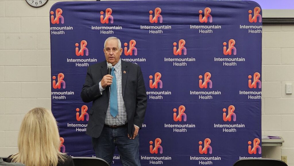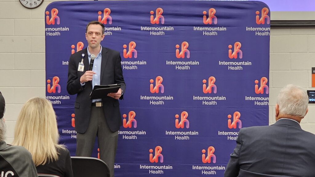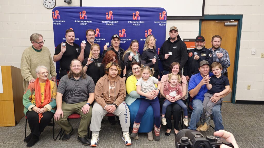 On Feb. 12, Intermountain Health held an award ceremony honoring first responders for going above and beyond the call of duty while responding to a carbon monoxide incident. The incident happened Dec. 31 at a church in Monroe and sent 63 patients to the emergency department at Intermountain Sevier Valley Hospital in Richfield. 49 patients had to be transported to other hospitals in Murray, Provo and St. George for treatment in hyperbaric chambers. In a press release it was shared, “the need for so many transports, late at night on New Year’s Eve, complicated efforts to find crews. However, Sevier County EMS, Piute County EMS, and Gunnison Valley EMS answered the call for help.” 22 of these first responders were awarded an Intermountain Challenge Coin during the ceremony. Thayne and Lindsay Manning and their 14-year-old son Hekesi, who were all treated for carbon monoxide poisoning that day, helped hand out the coins to the EMS crews.