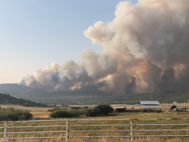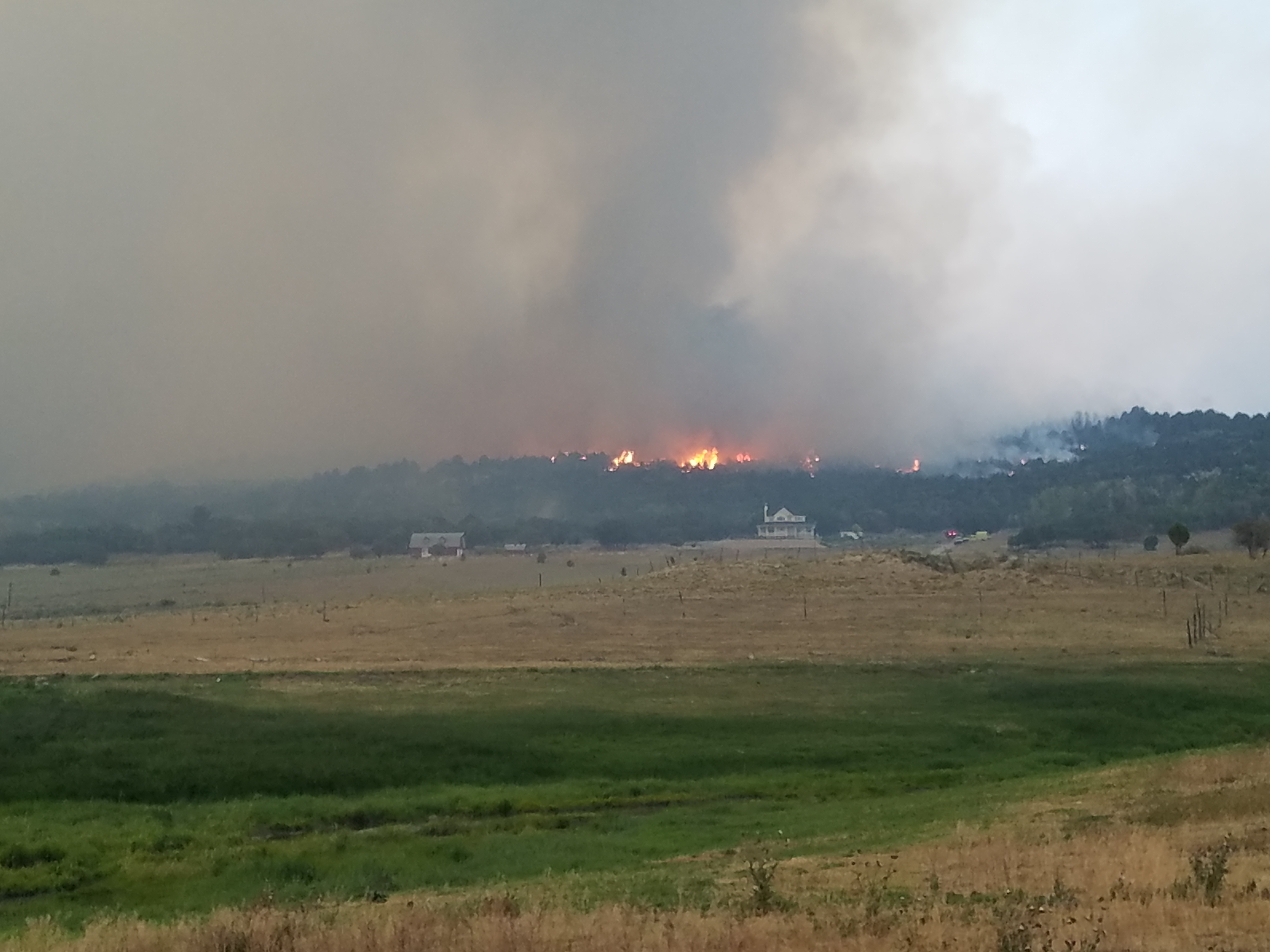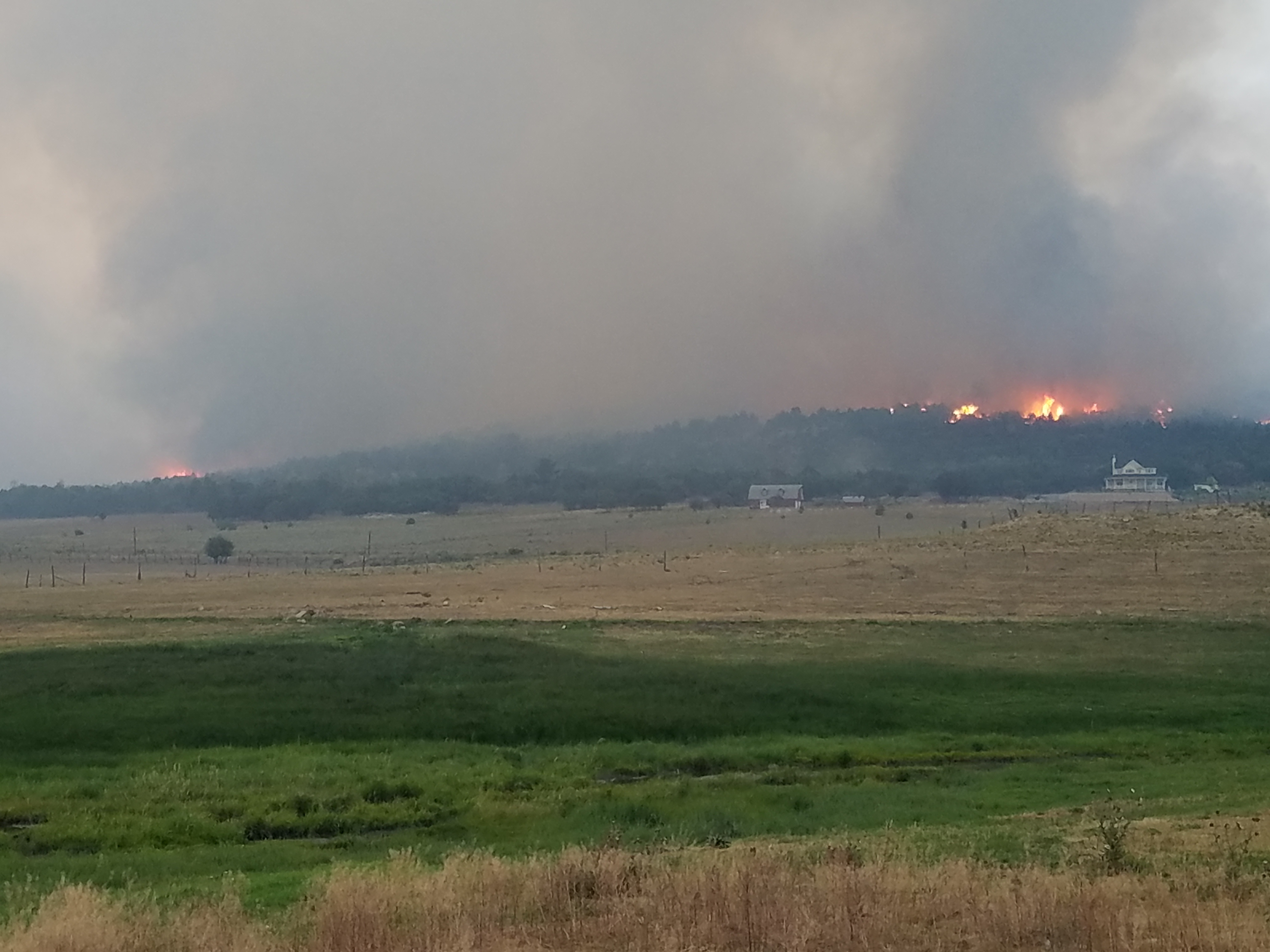 According to the Forest Service, the fire is burning all on private land. No structures have burned as of 7:30 p.m., but several homes are threatened.