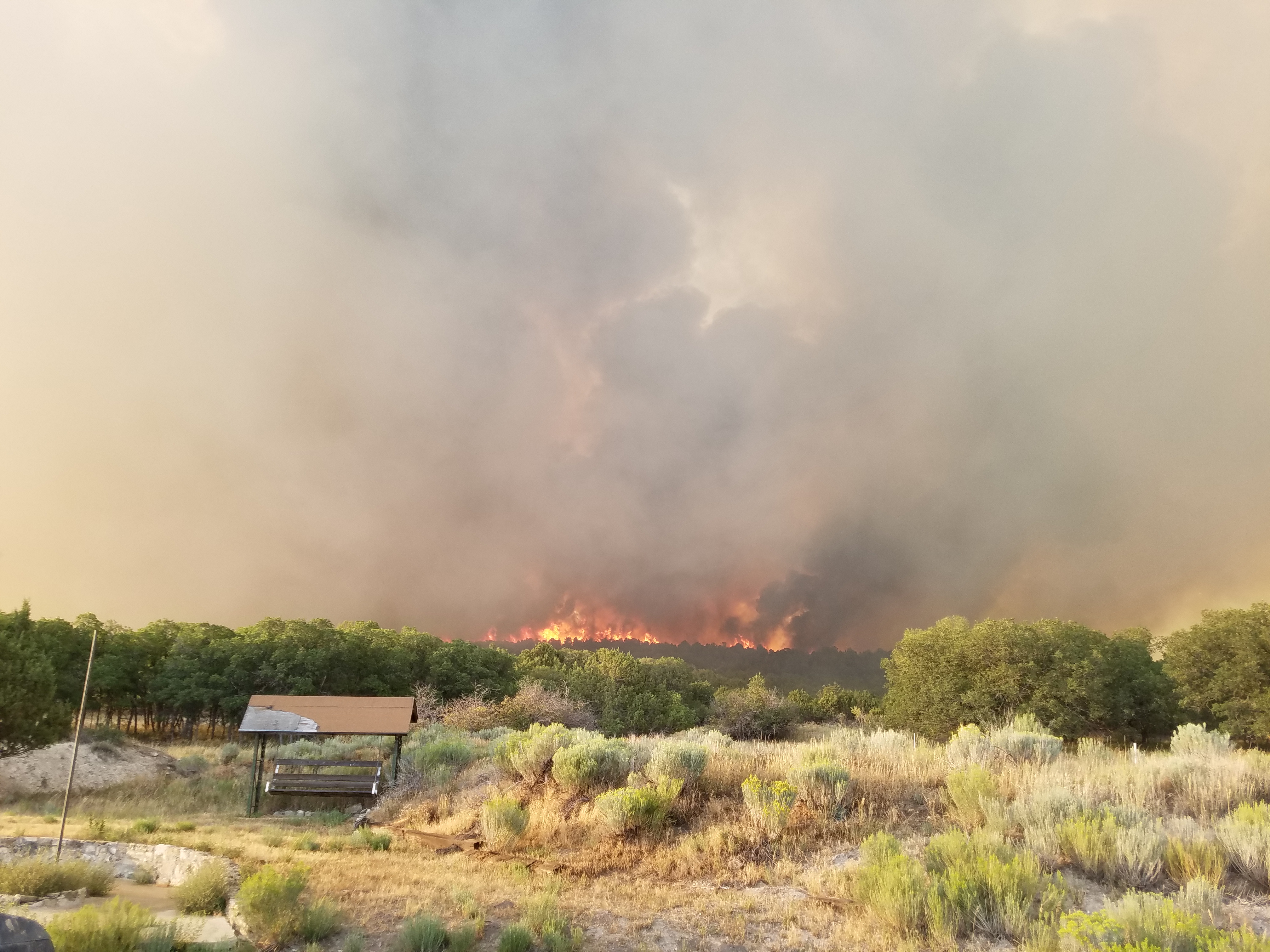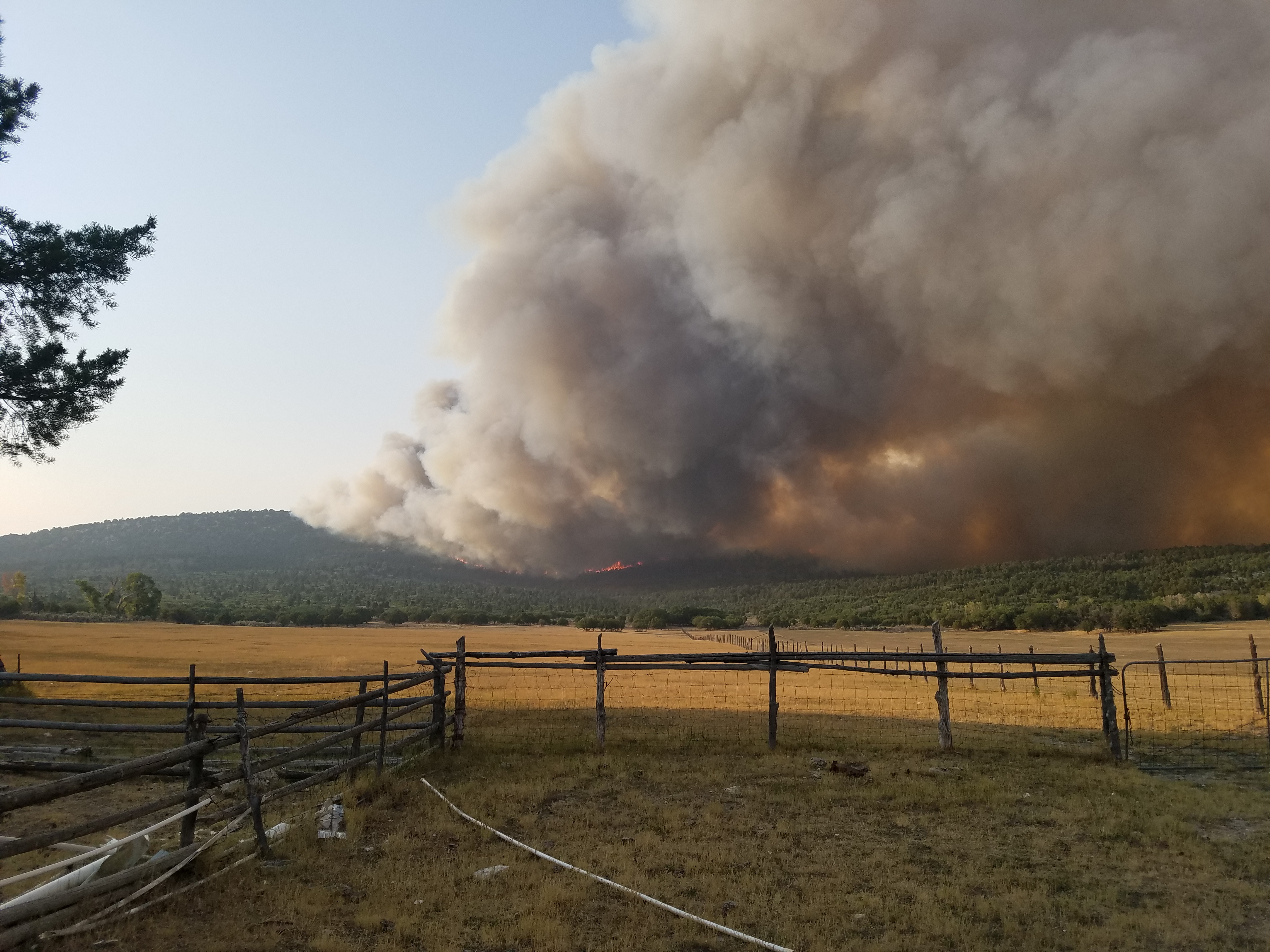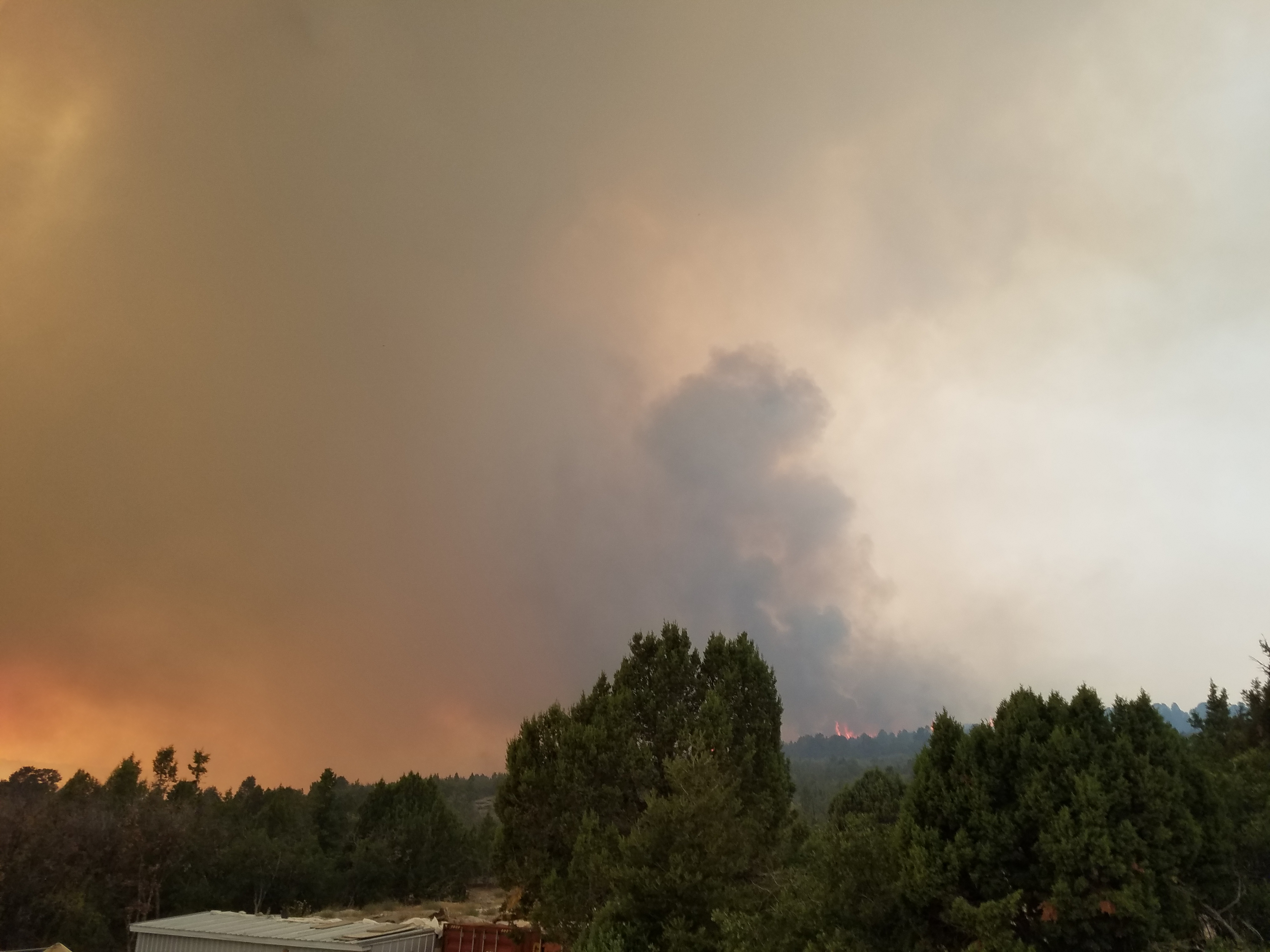 According to the Forest Service, the fire is burning all on private land. No structures have burned as of 7:30 p.m., but several homes are threatened.