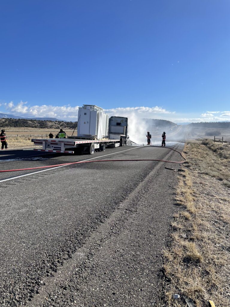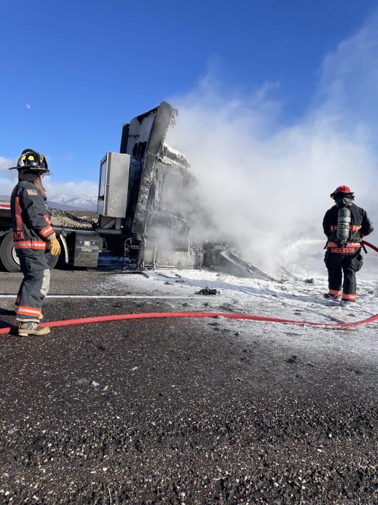 Just before 3:30 p.m. on Jan. 9, a semi truck was called in as being driven recklessly, westbound on I-70 in Sevier County. A Sevier County deputy made an attempt to get the truck to stop but it continued driving erratically. According to Sevier County Sheriff Nathan Curtis, “with the help of UHP, spikes were used and the truck continued to drive south after reaching I-15. It eventually stopped approximately three miles north of Beaver as it was starting to smoke heavily from driving on the rims.” The driver, whose name has not yet been released, exited the truck and was taken into custody without further incident. Beaver fire department and EMS responded to put out the flames. Charges are pending and more information will be released at a later date.