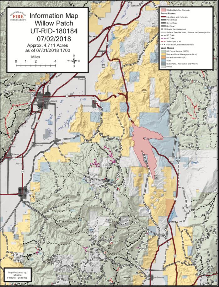 UPDATE: The Forest Service reports the Willow Patch Fire at 4,711 Monday morning with 50 percent containment.