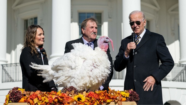 (WASHINGTON) — Peach and Blossom are the two lucky turkeys from Minnesota who escaped a fowl fate of ending up on someone’s Thanksgiving table this year when they were pardoned Monday by President Biden at the White House.
