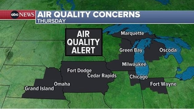 The smoke from the flames will create potentially dangerous air quality conditions from Nebraska to Michigan on Thursday, including the cities of Chicago; Milwaukee; Omaha, Nebraska; and Green Bay, Wisconsin. Among the major cities in the world, Chicago has the second-worst air quality on Thursday.