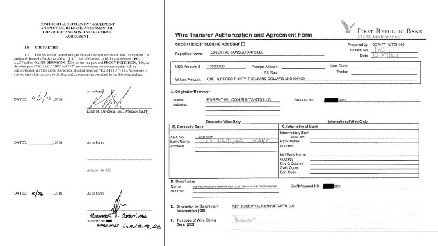 Jurors saw the wire transfer authorization form from Cohen’s shell company, Essential Consultants LLC, to Keith Davidson’s trust account for Stormy Daniels.