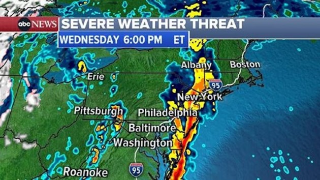 The storm will reach Philadelphia by mid-afternoon, and then bring heavy rain and gusty winds to the New York City area during the evening rush hour.