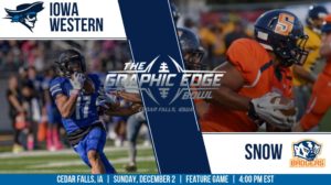 (CEDAR FALLS, IA) November 13, 2018 — The 9th ranked Snow Badgers football team received a bowl bid today to square off with the 3rd ranked Iowa Western Reivers in the Graphics Edge Bowl on December 2nd in Cedar Falls, Iowa at 4:00 pm (EST). This is the first time in school history that the Snow Badgers will play in a Sunday bowl game, which will be played at the University of Northern Iowa’s Unidome.